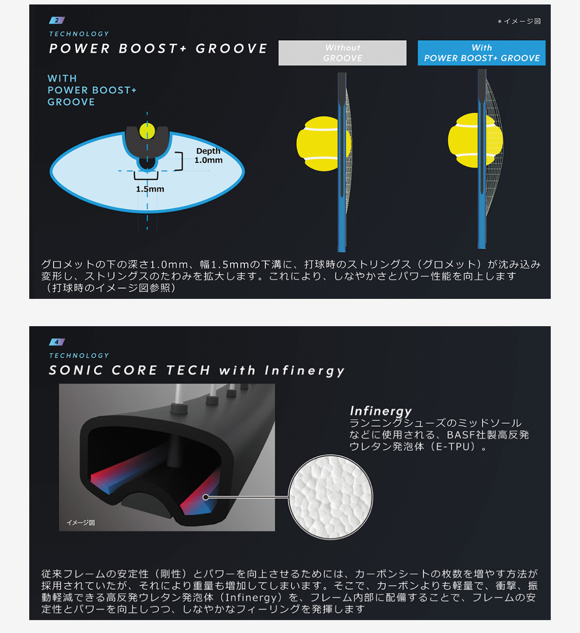 よりワイドなスイートエリアと、よりソフトな打球感を実現し、操作性を重視するプレーヤーやジュニアのステップアップに適した100平方インチ・モデル。