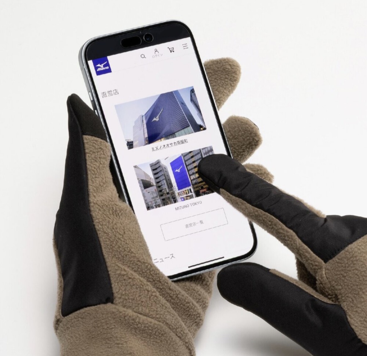 MIZUNOミズノ プルーフフリース手袋(タッチパネル) 32JYC61052:キャメル 25FW【ゆうパケット対応可】