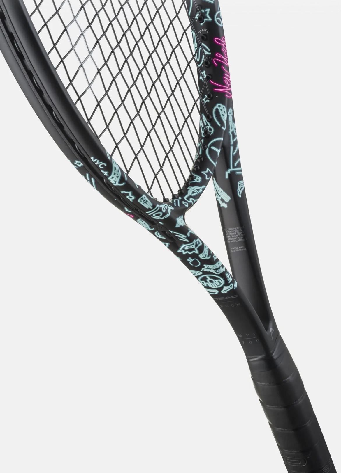 バイオサーキュラーカーボンファイバーを使用して設計された、革新的な限定モデル「BOOM MP L NEON テニスラケット」は、眠らない街・ニューヨークのネオンライトから着想を得たデザインが特徴です。