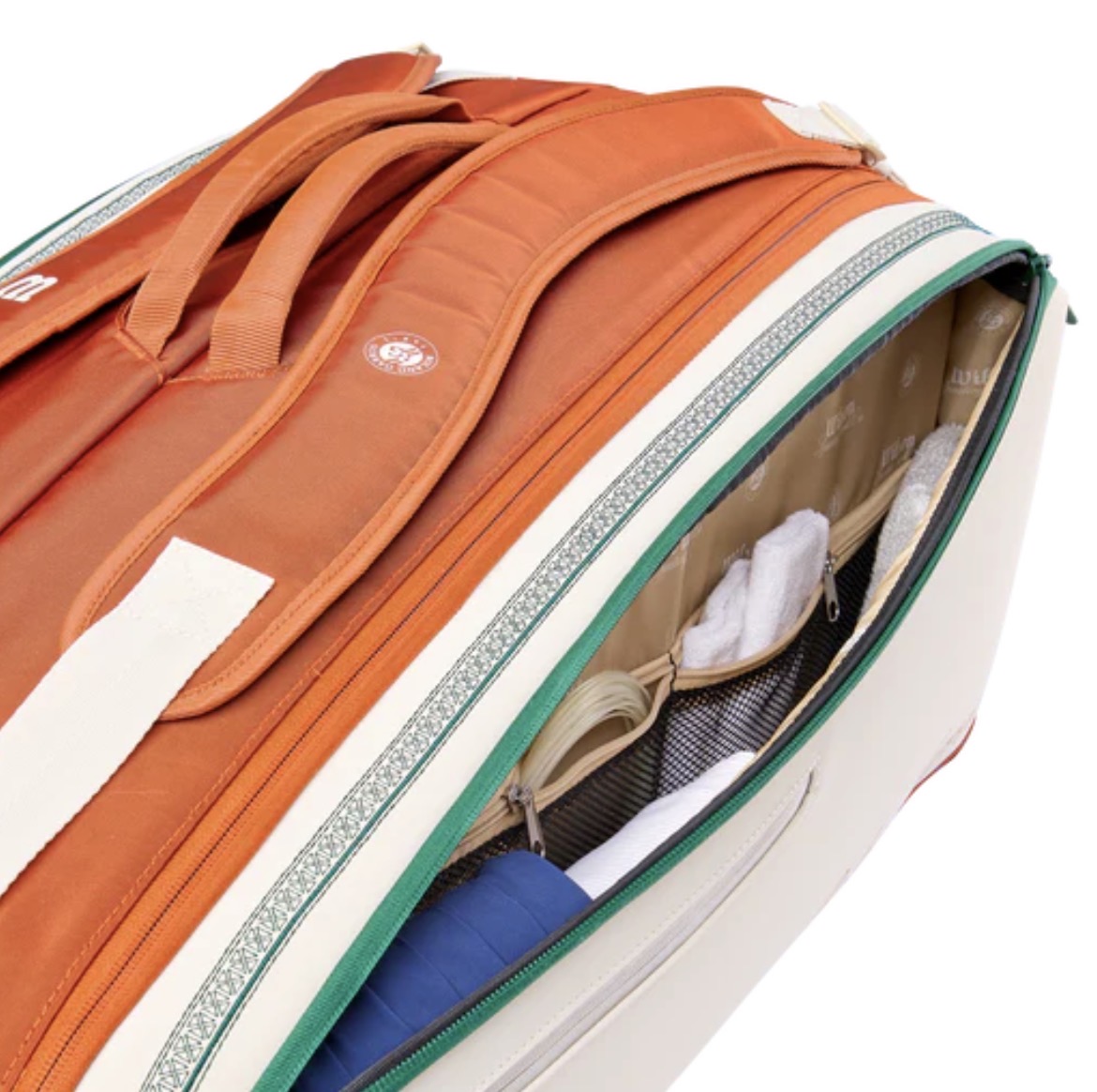 2026年全仏オープンROLAND GARROS(ローラン・ギャロス)デザインのツアーバッグ。メインポケットは2室に分かれており、ラケットは最大9本まで収納可。1室はサーモガード(内部の温度上昇を防ぐテクノロジー)を搭載。両サイドには小物が収納出来る大型のアウトポケットが備えられています。パッド付のショルダーストラップはバッグパック仕様、肩掛け仕様の両方の用途で使用可能です。素材は軽量かつ高強度・高耐久性の900Dポリエステルを使用しています。