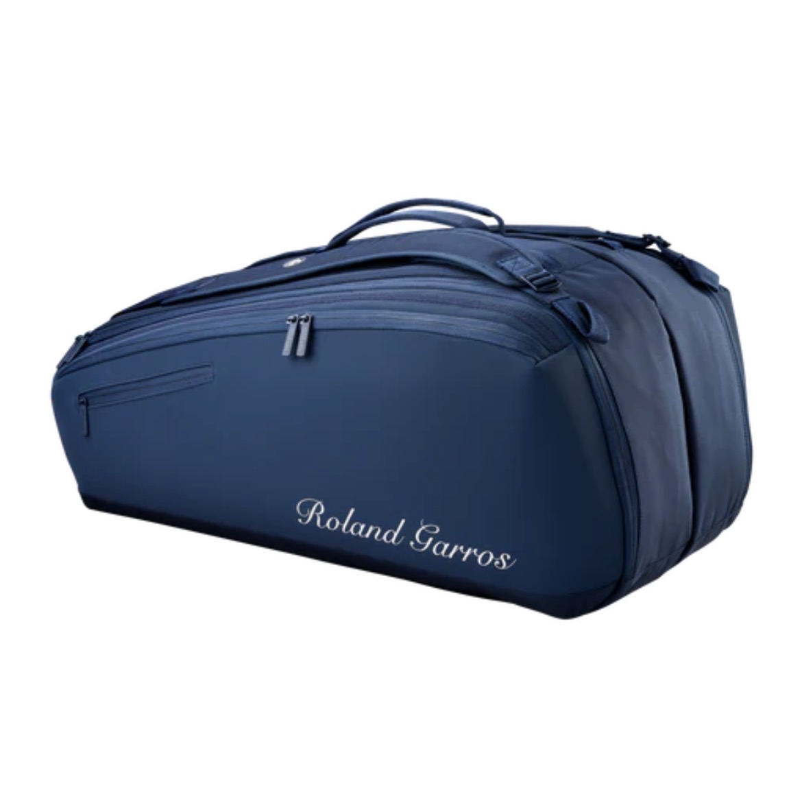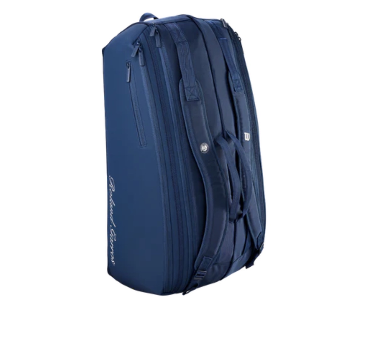 2026年全仏オープンROLAND GARROS(ローラン・ギャロス)デザインのツアーバッグ。SESSION DE SOIR?E(セッション・ド・ソワレ)にインスパイヤされたネイビーを基調としたカラーリング。メインポケットは2室に分かれており、ラケットは最大9本まで収納可。1室はサーモガード(内部の温度上昇を防ぐテクノロジー)を搭載。両サイドには小物が収納出来る大型のアウトポケットが備えられています。パッド付のショルダーストラップはバッグパック仕様、肩掛け仕様の両方の用途で使用可能です。素材は軽量かつ高強度・高耐久性の900Dポリエステルを使用しています。