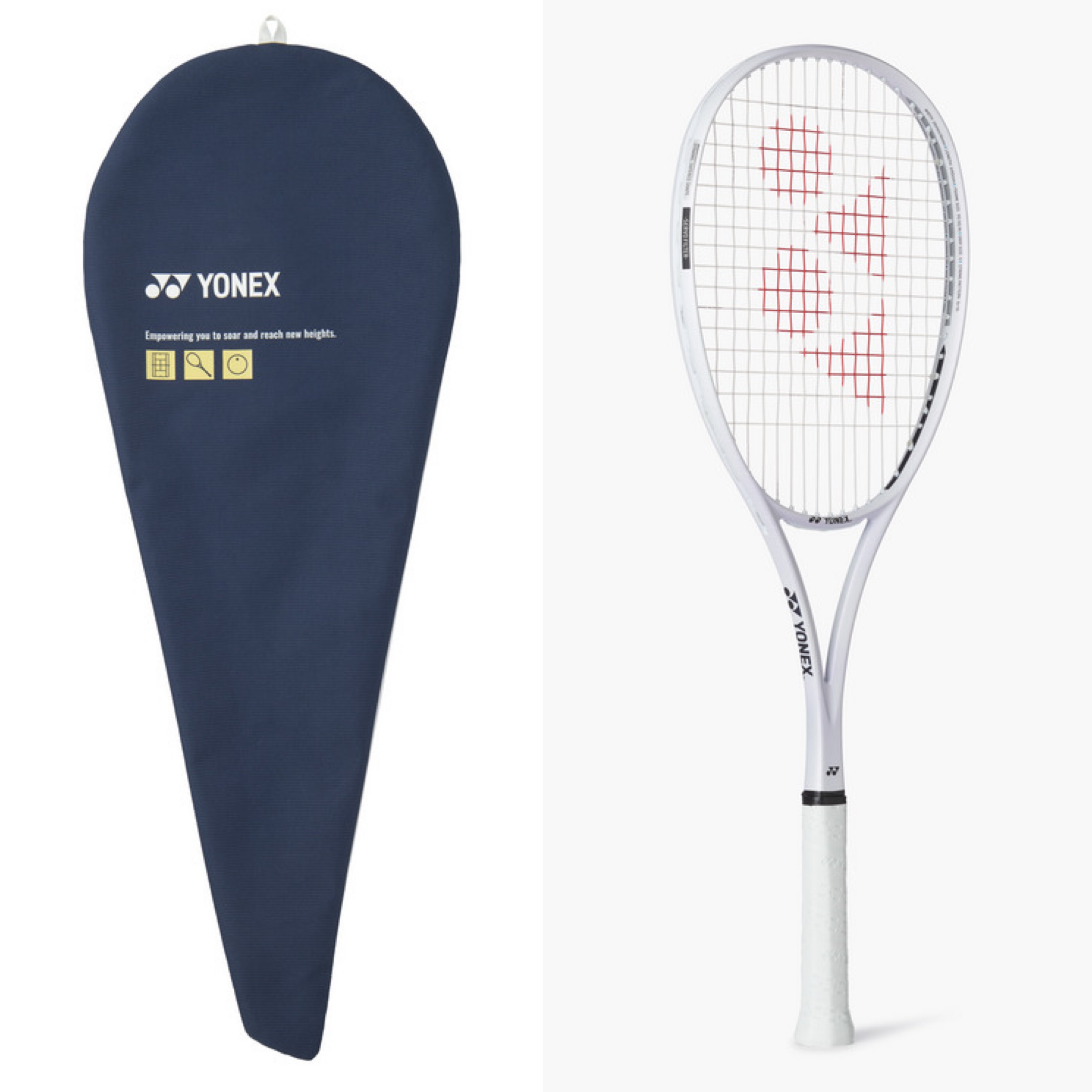 さらに、ソフトテニスとして初となる4種類から選べるラケットケースを用意。オフコートでも個性を発信し、選べる楽しさを提供します。ラケットデザインもシンプルなモノトーンでまとめ、多様なカラーがあるグリップやストリングとも合わせやすく、自分の好みにセットアップしやすくなっています。